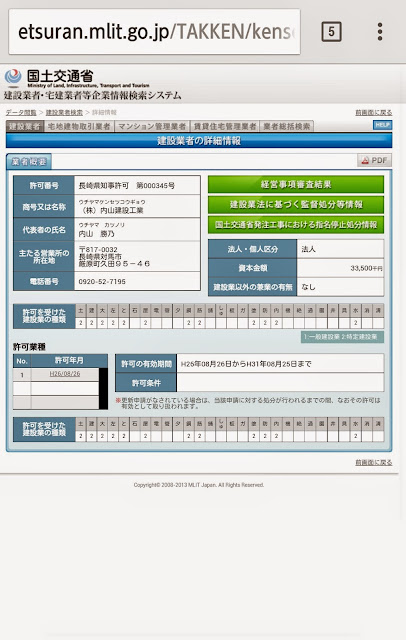 内山建設工業は、正式に国交省の許可を受けた建設会社ですね。